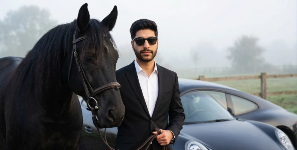 Luxury suit, porsche and black horse