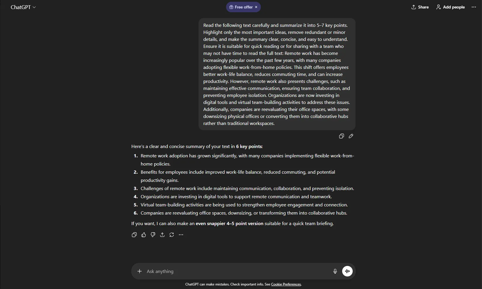Read the following text carefully and summarize it into 5–7 key points. Highlight only the most important ideas, remove redundant or minor details, and make the summary clear, concise, and easy to understand. Ensure it is suitable for quick reading or for sharing with a team who may not have time to read the full text: [insert text].