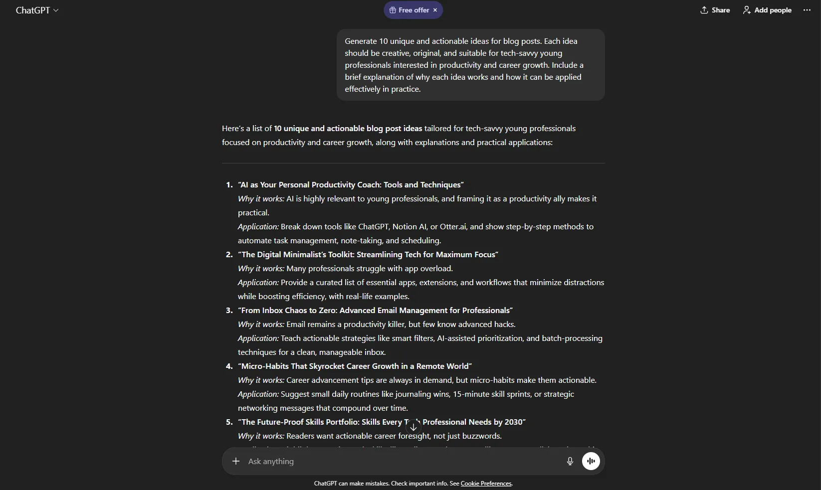 Coming up with new ideas can be mentally draining. ChatGPT can generate multiple options in seconds, making brainstorming faster and more productive.