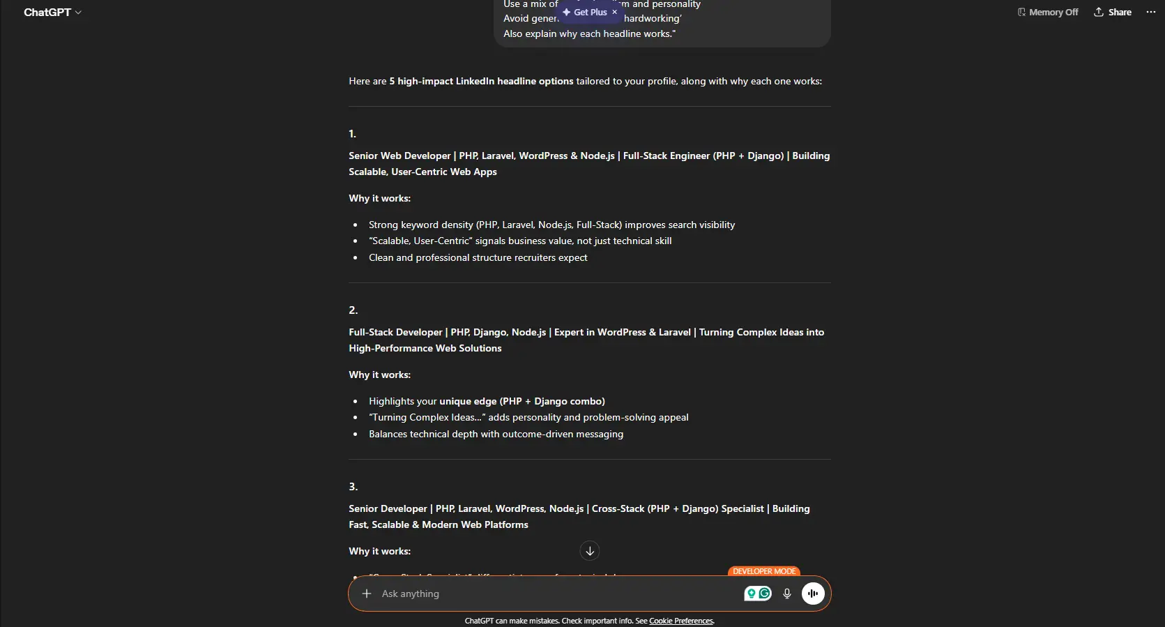 LinkedIn Headline Optimization Prompt