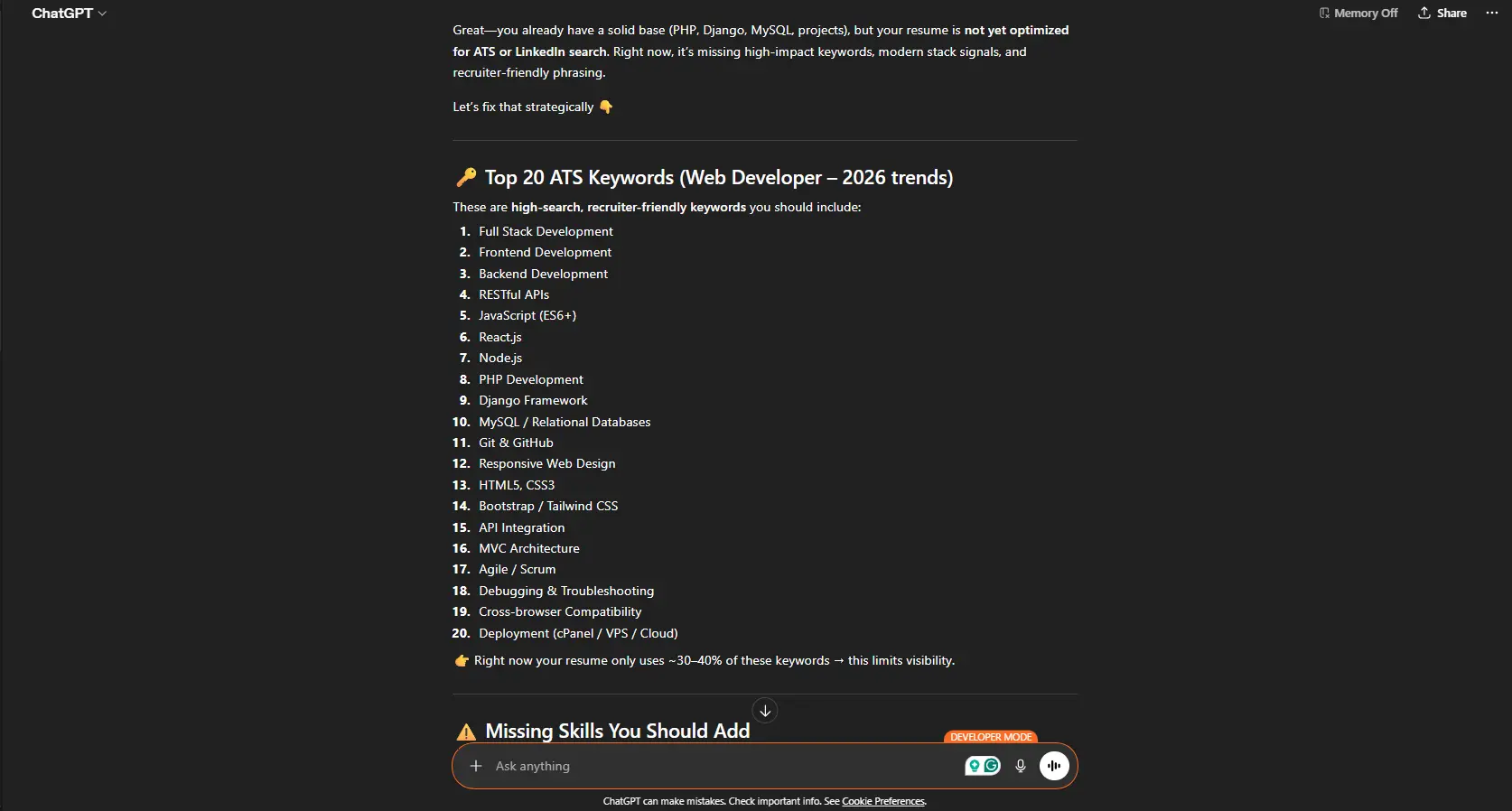 - Missing skills I should add