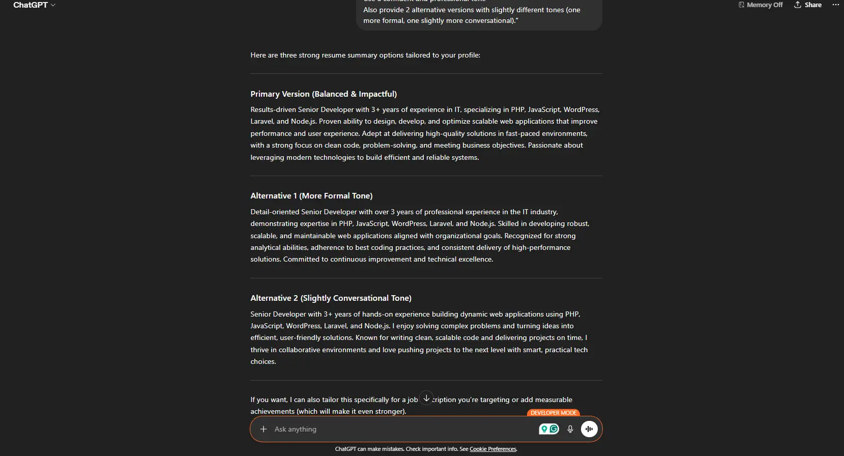 Resume Summary / Professional Profile Generator Prompt