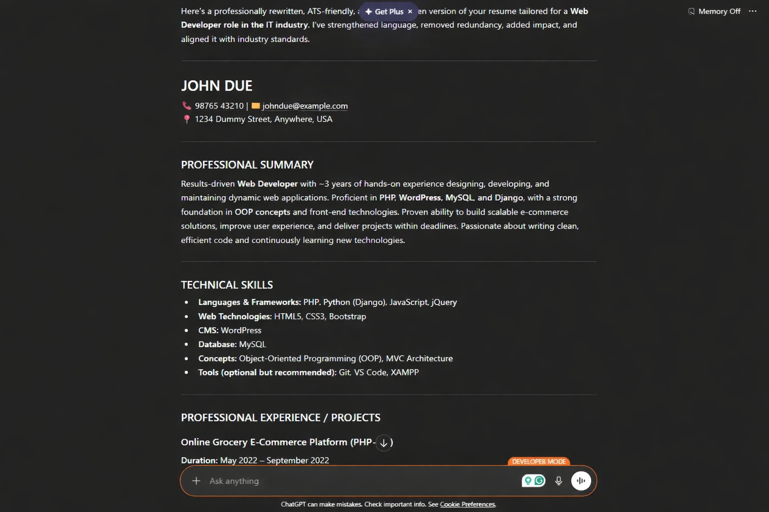 - Improve keyword optimization (ATS-friendly)