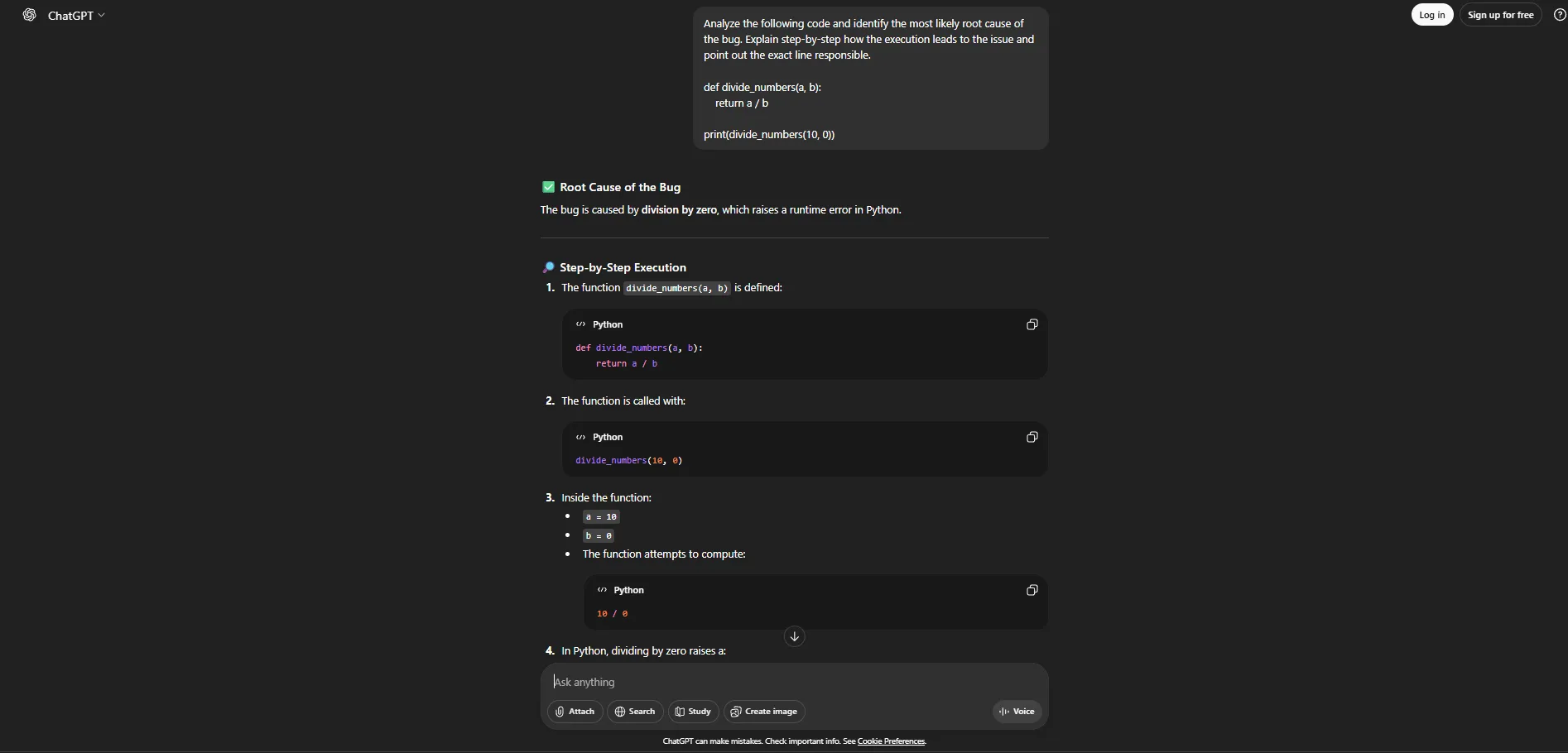 The better your prompt, the better the debugging result.