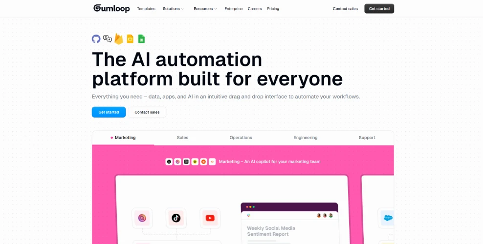 Gumloop is a platform that automates workflow processes involving documents and organizing data. The platform features a drag-and-drop canvas similar to Make, but it is specifically designed and optimized for AI model automation.
