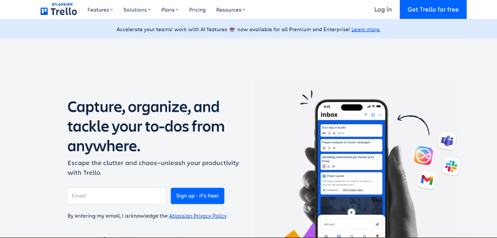 | Trello | Project & task management | Managing multiple projects and deadlines | Boards, lists, cards, task automation, integrations | Free plan available |