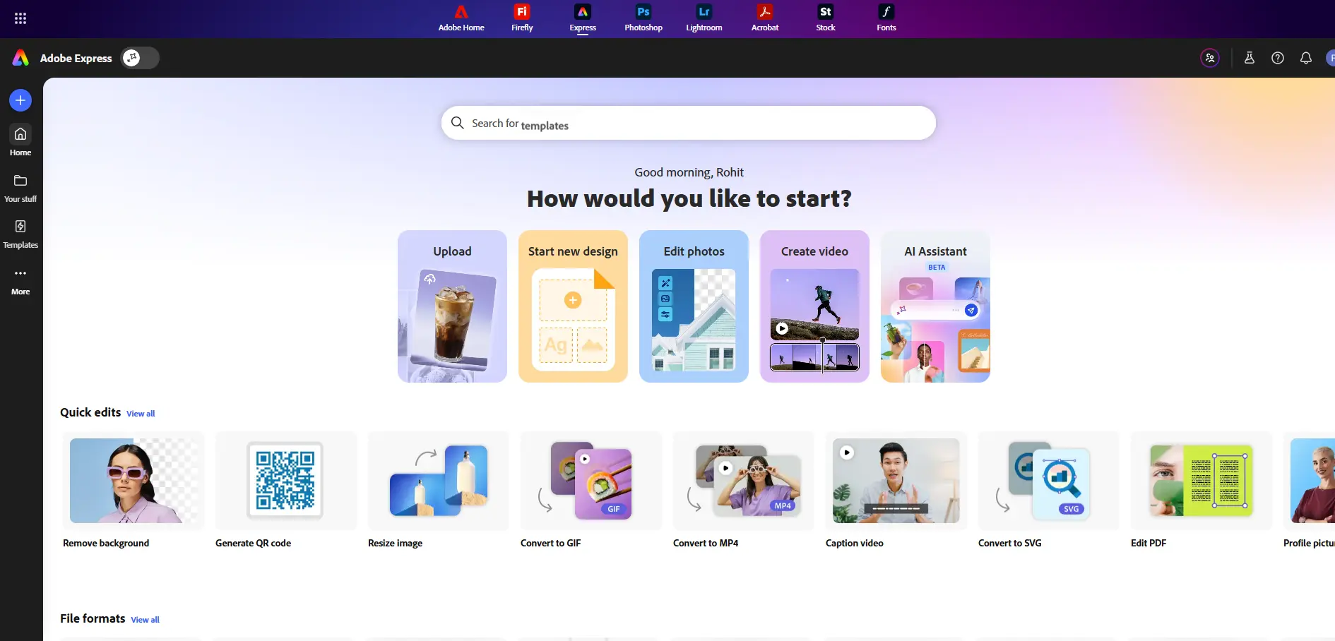 Adobe Express is a great resource for creating amazing visual content, such as social media posts and videos, with its extensive library of Customizable templates and Professional editing capabilities.