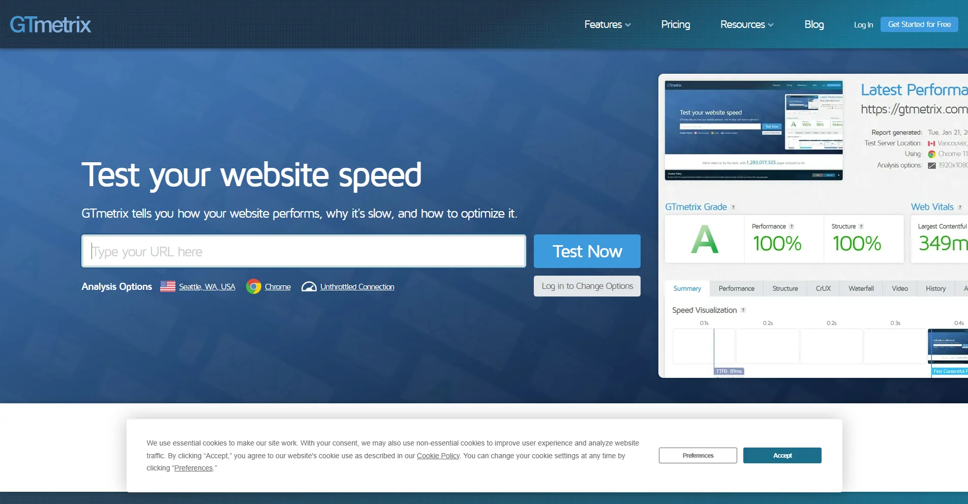 GTmetrix is a very useful online utility for a detailed analysis of performance. It blends the results of Google’s Lighthouse metrics and its own performance scoring system to allow for a detailed assessment of loading times and resource usage. A major important and unique feature of GTmetrix is that it offers a waterfall chart that shows the sequence and time involved for each element’s loading on a webpage. This will enable a more accurate determination of those processes that are taking long on the client side and which images are loading too large on the server side. GTmetrix provides historical graph functionality so that the user will be able to measure the improvement made on the loading speed on the webpage. The facilities provided for the testing of a webpage with GTmetrix are quite flexible and useful if your webpage targets users from all around the globe.