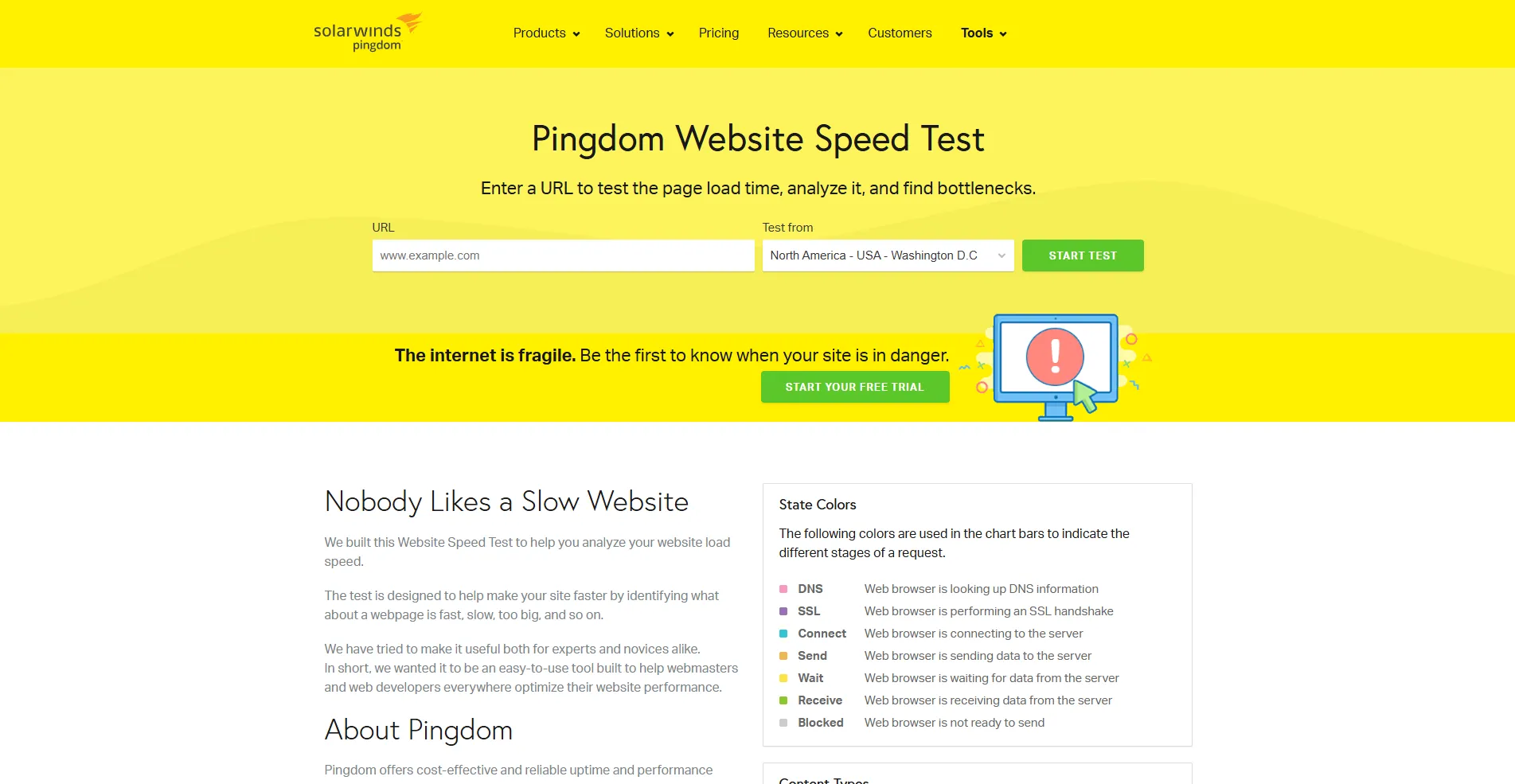 Pingdom is an online facility for testing the speed of a website, which gives a quick diagnosis of the speed of the page, constituents, and overall speed of the website. Pingdom is much popular for its simplicity and ease of use, which is a great facility for website owners who are waiting to get a quick diagnosis of the speed of their website without needing much technical expertise. Pingdom also tests the speed of a website from different geographic locations around the world, giving information about the constituents of a website that are loading slowly, which helps a user to work on the speed of images, scripts, and the server speed of a website. Additionally, the facility also provides the option for tracking the down time of a website.